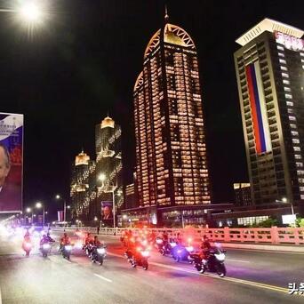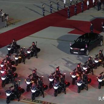 两人一起坐上普京的豪华轿车前往普京下榻的锦绣山迎宾馆。沿途几乎每隔一个灯柱就可看到普京的肖像,随行车队共数十辆汽车和电单车,一路上都有安全人员站岗。