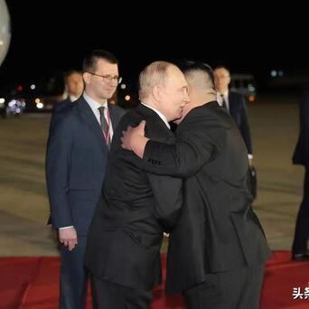 金正恩和普京亲切握手,热情拥抱。普京称金正恩为“同志”,对金正恩亲临机场热情接待表示谢意。